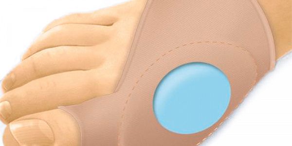 Бандаж покрывает область пораженную бурситом, поглощает удар и снижает боль, вызванную давлением обуви на «косточку».